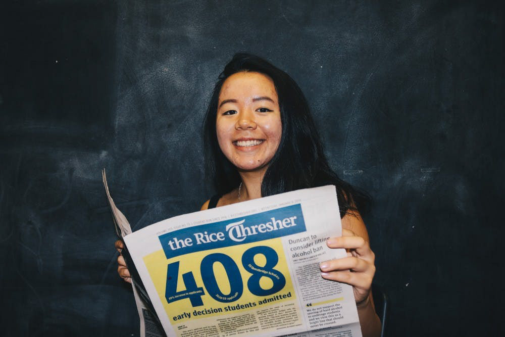 During my time at the Rice Thresher, I wrote 106 articles across all five sections: news, arts & entertainment, opinion, sports and features. As editor in chief, I spearheaded the weekly editorial, written and edited by our editorial board.